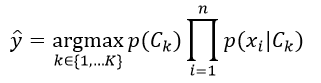 如果个体的特征数量n很大,或者某个特征有大量的数值,则应用式1对个体进行分类是不可行。因此我们应用贝叶斯理论,把条件概率进行分解,使其更利于操作: