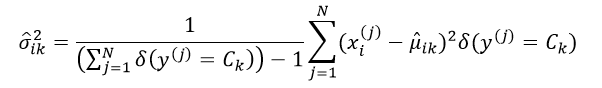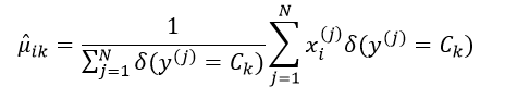 式中,xki(j)表示训练样本中属于分类k的第j个样本的第i个特征属性的值,则最终组成的n维(共有n个特征属性)均值向量μk的极大似然估计为: