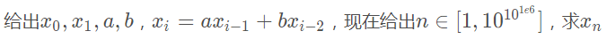 struct MAT{LL t[2][2];MAT operator * (const MAT&b)const{MAT res;memset(res.t,0,sizeof(res.t));for(int i=0;i<2;i++)for(int j=0;j<2;j++)for(int k=0;k<2;k++){res.t[i][j]=(res.t[i][j]+t[i][k]*b.t[k][j]%mod)%mod;}return res;}