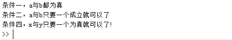 if(x && y)disp('条件三,x与y必须都成立才行')