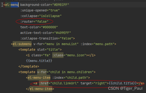 默认时为false,菜单项上的地址跳转可以使用<a :href='URL'>