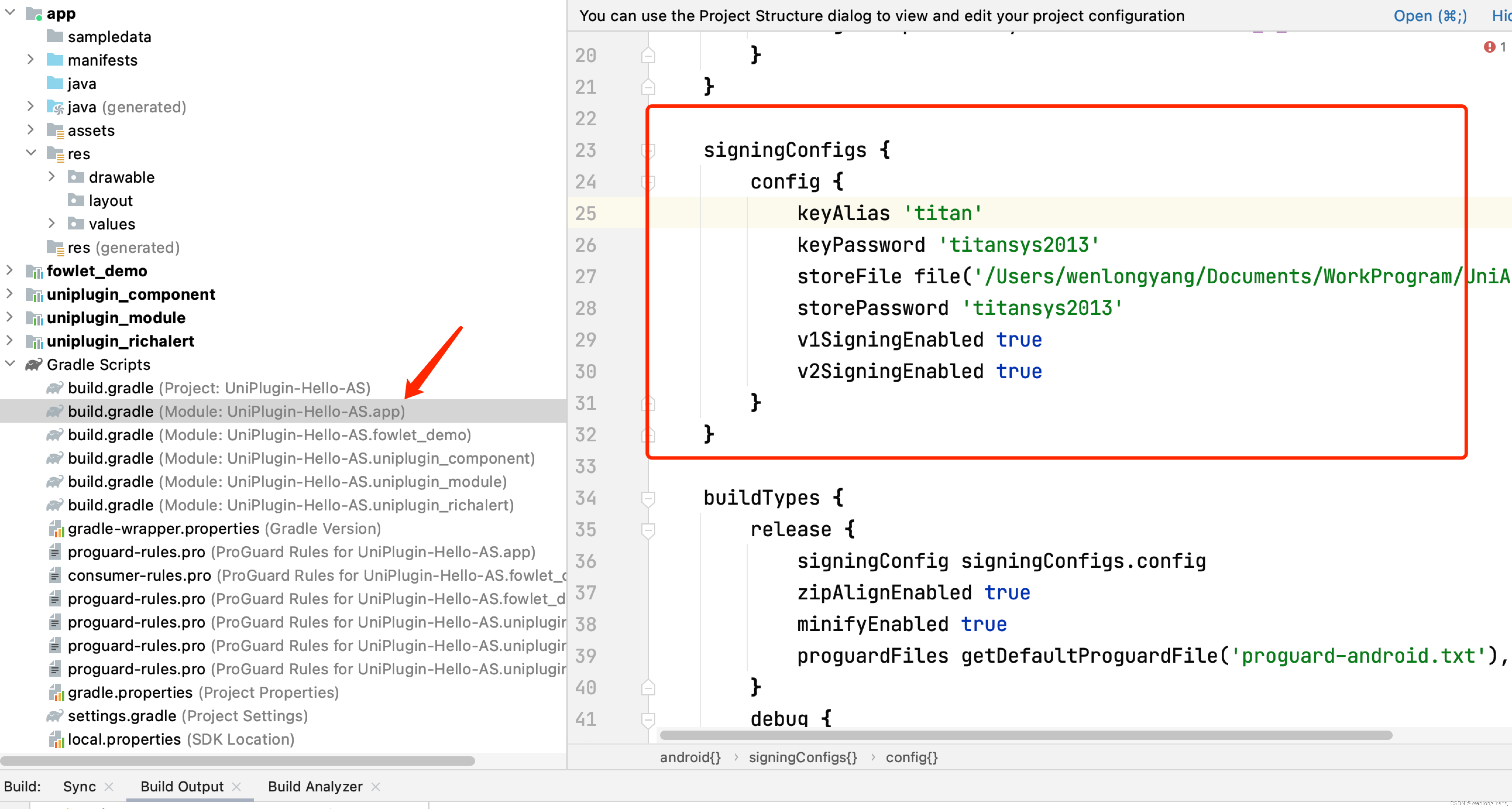 解决这个问题其实很简单,找到项目当中的如下路径,这个是我修改后的,你生成新签名后这个地方也要修改,我生成的正式签名,测试签名没试过应该也可以
