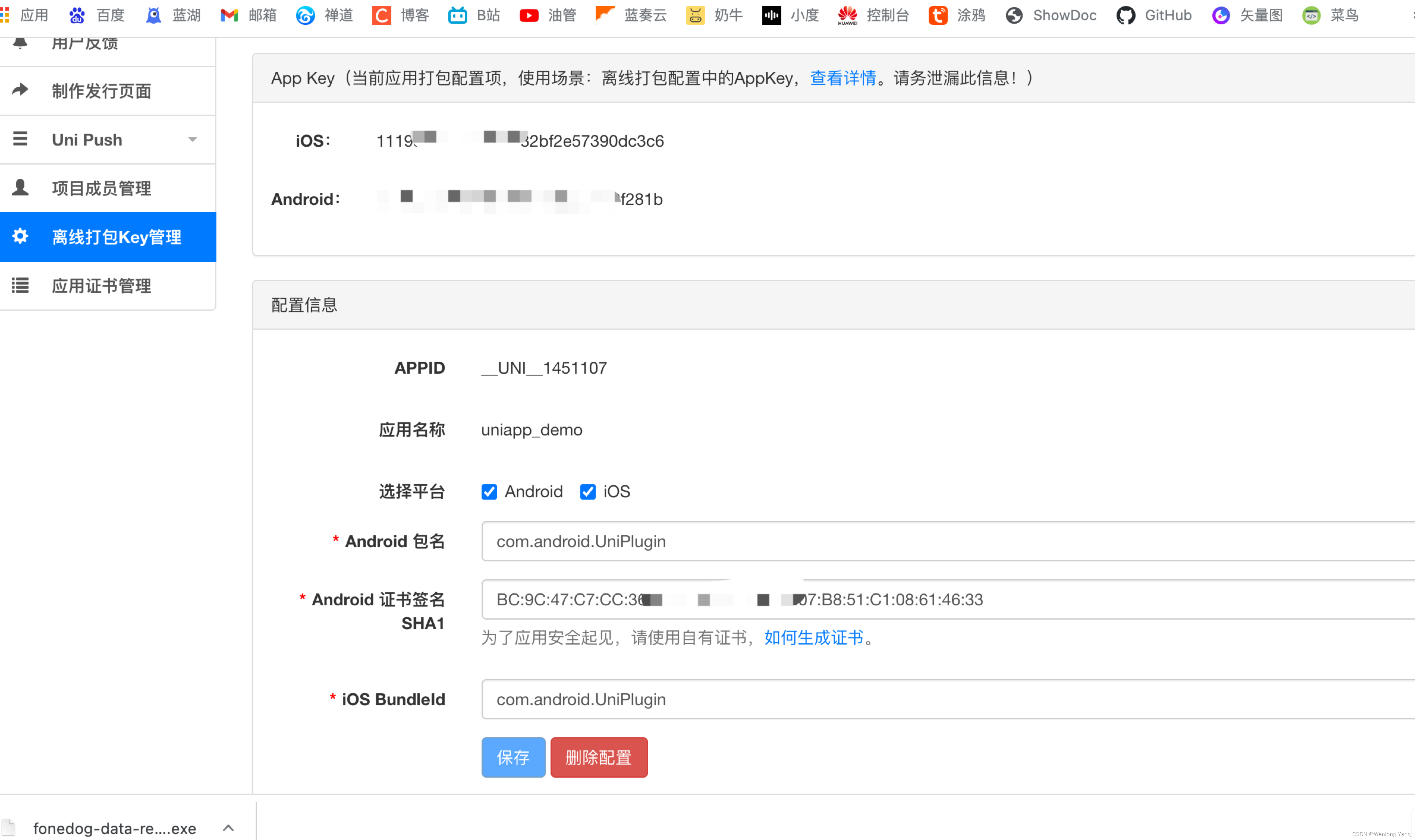 点击保存后appkey也会重新生成,记得要在清单文件里面修改一下appkey