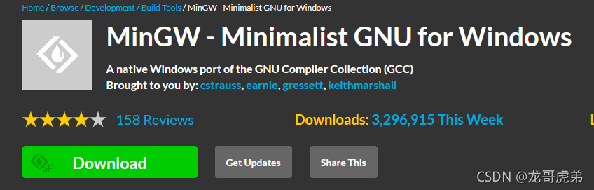 一般会使用Microsoft C++编译工具或者是MinGW的编译工具。MinGW就是Minimalist GNU on Windows。但是好笑的是居然在百度不太好搜索到直接的下载链接,MinGW从这里走: