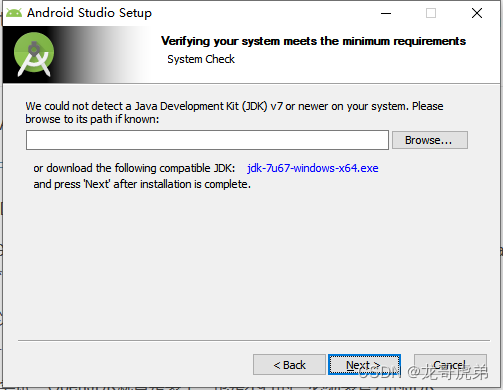 至于为什么不能正常的使用OpenJDK,根据Android Studio的提示,我估计是安装包自己执行了一下Java.exe 的版本命令:java -version ,如果发现返回值是java version "1.7 这样的开头,就认为可以,版本号大于1.7时,认为可以接受。OpenJDK返回的是openjdk version "1.8 这样就不接受了。也很正常,Google只根据官方JDK设计IDE,对于OpenJDK版本可能出现什么错误就无法照顾那么多版本了。