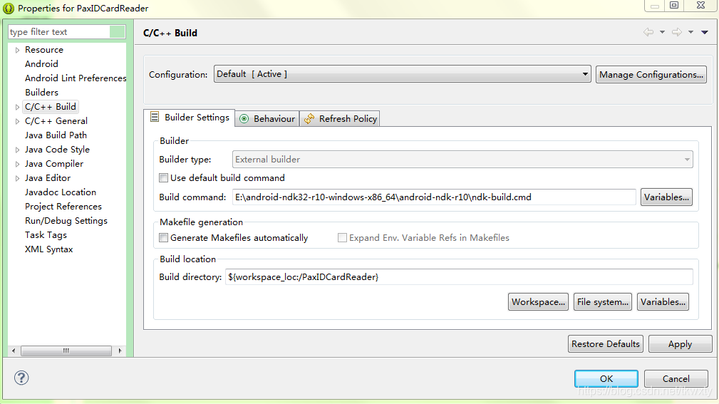 使用Eclipse编译带jni工程时出现make: *** No rule to make target `all'. Stop.解决办法
