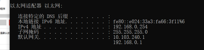 可以在cmd命令行ipconfig查看到笔记本在当前这个局域网的ip地址
