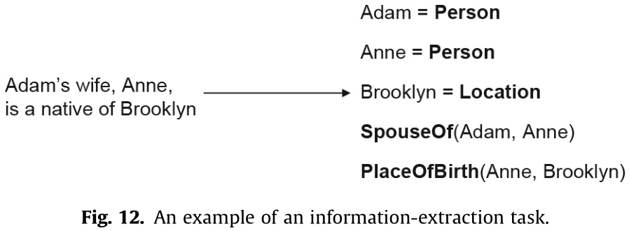 第二个例子是一个对话任务。例如,如果一个用户说我现在很饿,更合适的回答应该是:让我向您推荐一些不错的餐馆,而不是让我推荐一些好电影给你。这也需要推理,因为对话系统应该知道饥饿会导致寻找餐馆而不是看电影的行为。在本节的剩余部分中,我们将首先介绍两种类型的知识:知识图谱和常识。接下来,我们将描述典型的推理方法,这些方法在自然语言处理领域已经或正在研究。