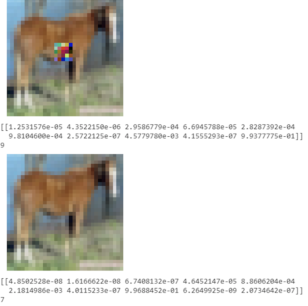腾讯朱雀实验室从简单的线性回归模型和 MNIST 开始入手,利用启发算法分析模型网络哪些层的神经元相对后门特性敏感,最终验证了模型感染的攻击可能性。在保持模型功能的准确性下降很小幅度内(~2%),通过控制若干个神经元数据信息,即可产生后门效果,在更大样本集上验证规模更大的网络 CIFAR-10 也同样证实了这一猜想。