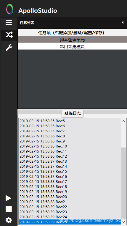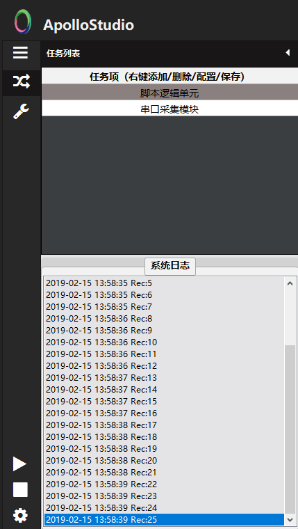 我们先预览下ApolloStudio的脚本工具箱里面即将应用到的技术点(串口采集设备跟串口通讯是两个不同的分支,主要区别在于通讯协议不同:串口采集设备的接收端是以回车换行结束,发送端自定义(适用于Arduino的Serial.println()函数);而串口通讯的接收和发送两端都是以0x02 + 数据内容(ascii码形式)+ 0x03结束):