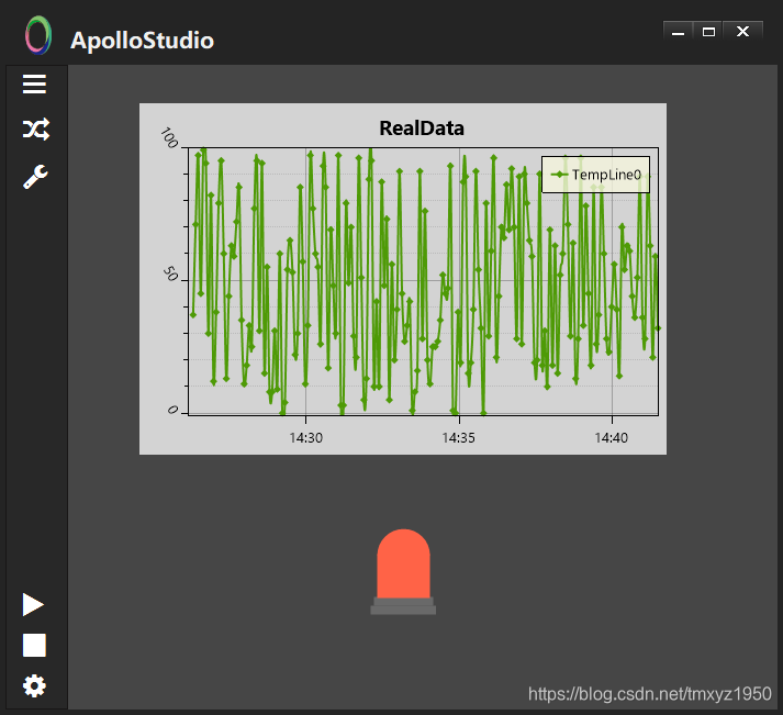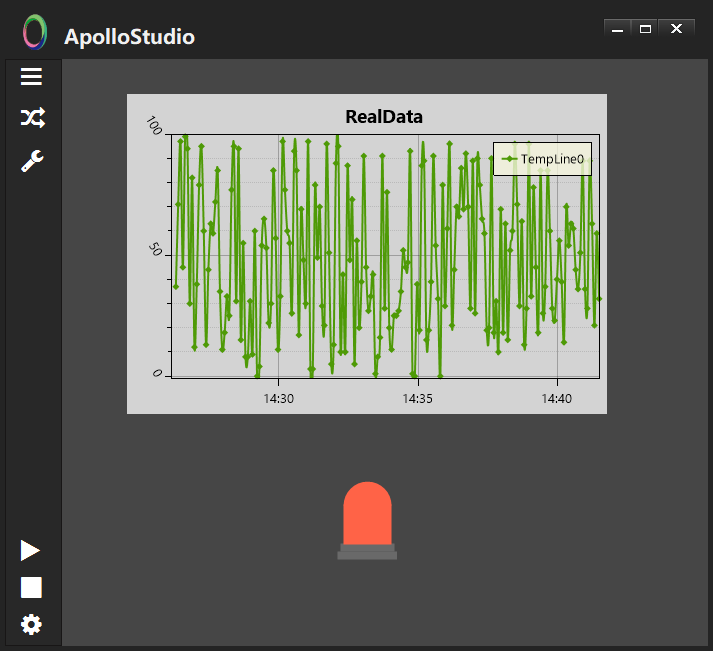 在ApolloStudio中,我们添加两个控件:图表控件,报警灯,并且分别命名为pv1和led1。
