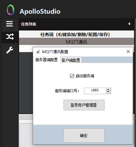 在ApolloStudio中根据需要不同分为客户端配置以及客户端配置,如果需要可以启用对应的模式,两种模式彼此独立,可以同时开启,在服务端中,我们可以在“登录用户管理器”中对用户进行修改(双击源数据中已有数据即可进入编辑模式):