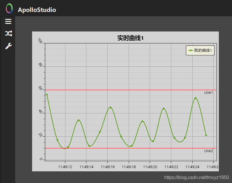在ApolloStudio中,软件提供非常简便的方法来实现这个需求,我们先来看一下(我们可以在脚本工具集>UI界面>图表控件>实时曲线找到):