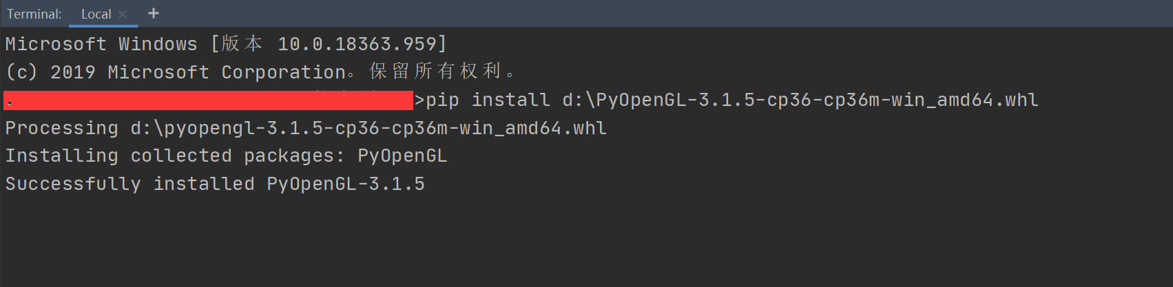 2. 直接在pycharm中使用pip install opengl路径进行安装即可。