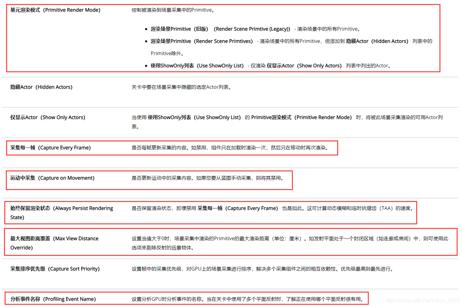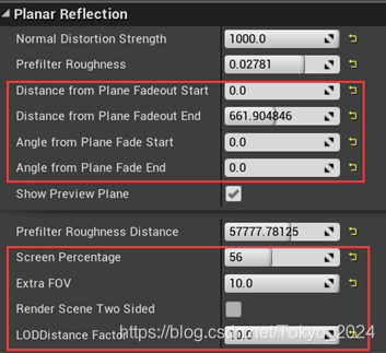 平面反射Actor的场景采集属性: