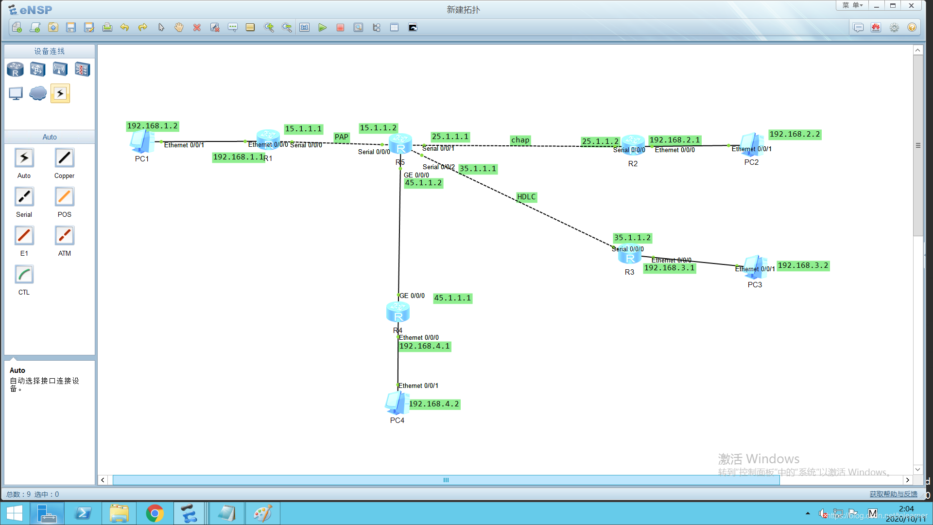实现了R1与R5之间的PPP pap认证