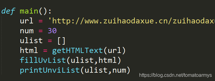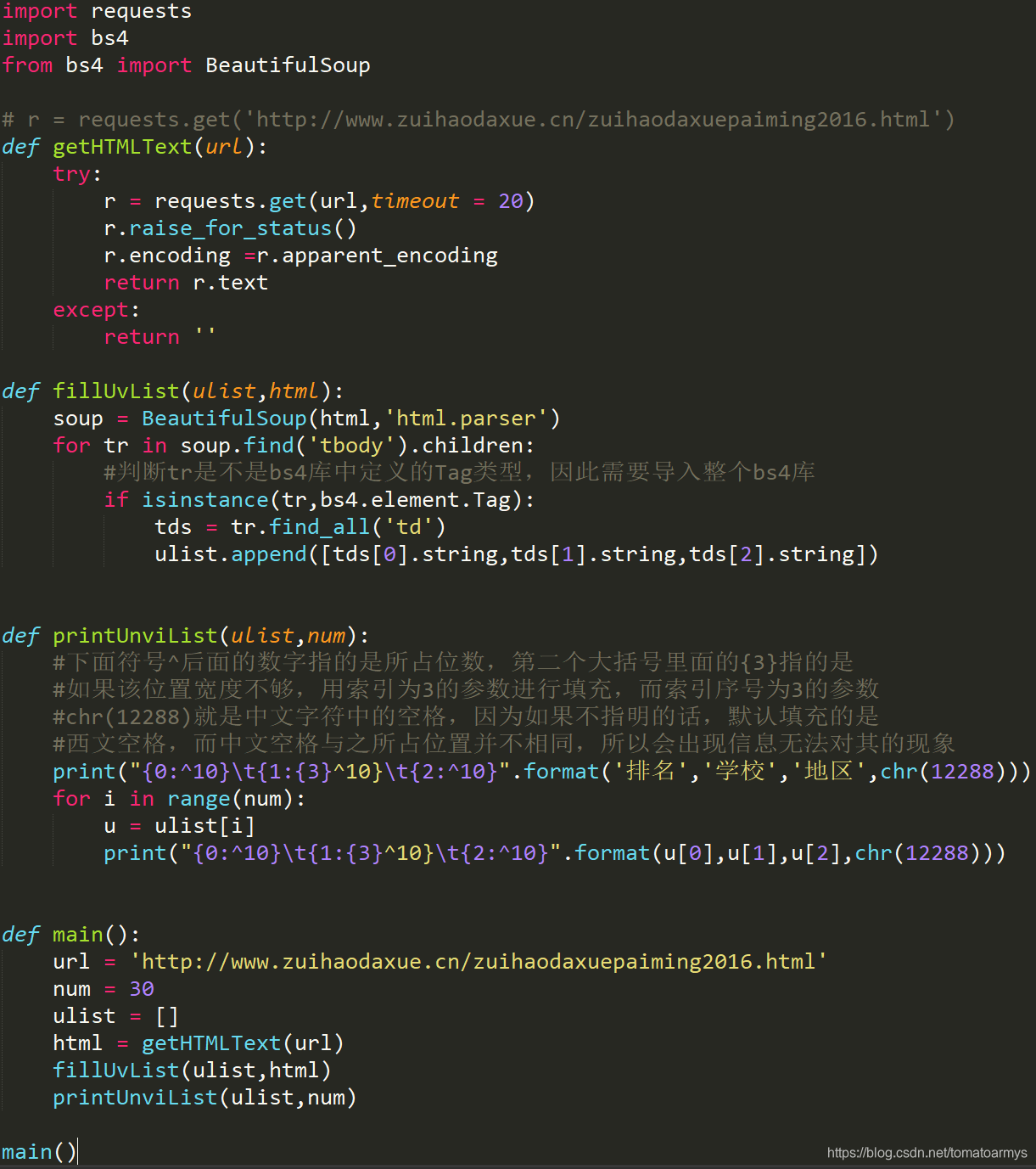 输出:大学排名信息的屏幕输出(排名,大学名称,总分)。