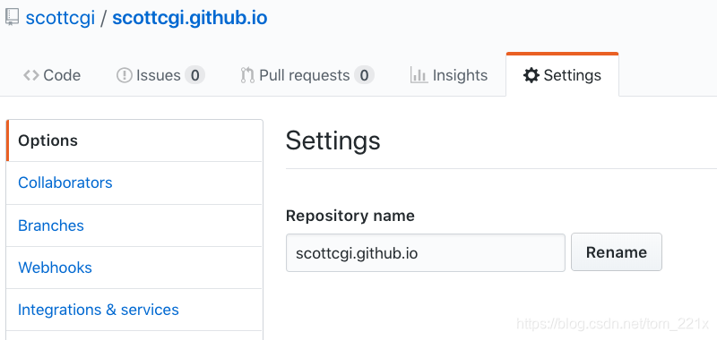 这里能够重新修改仓库的名称,比如这个仓库内容是fork别人的,就可以在这里修改成自己的username.github.io名称。