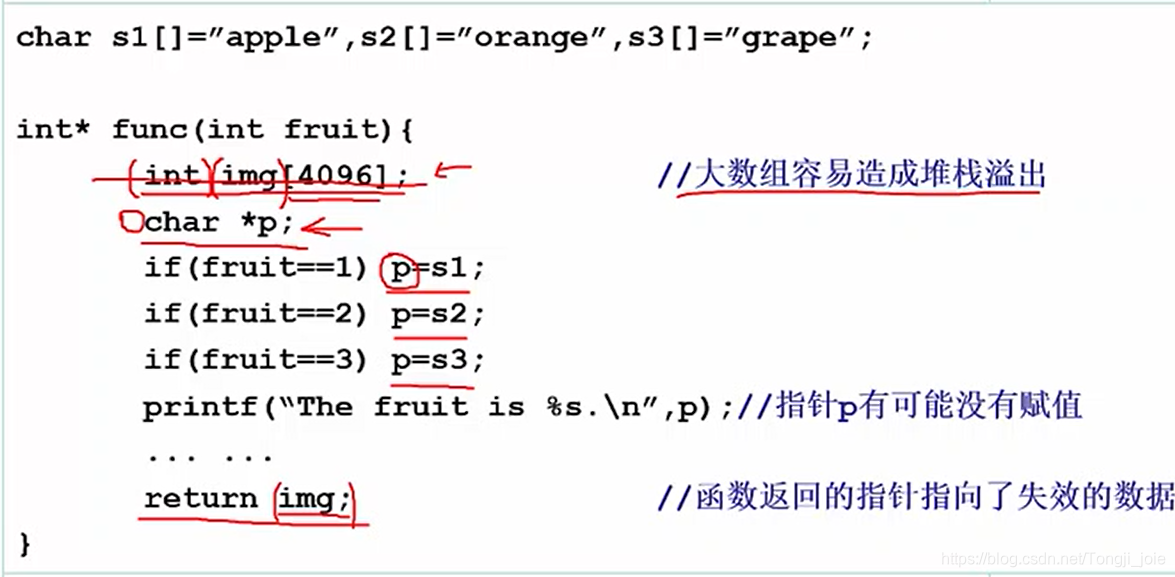 - 在对指针*p定义的时候,没有赋初值,*p在堆栈中会得到一个堆栈的历史值,在后面的p=s1,等操作中,会出现错误,
