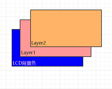 LTDC一共有两个Layer,Layer2在Layer1之上,三层颜色的示意图如下: