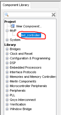 保存这个设计,然后在Qsys主界面中我们可以看见我们设计的IP核在IP Library中了:
