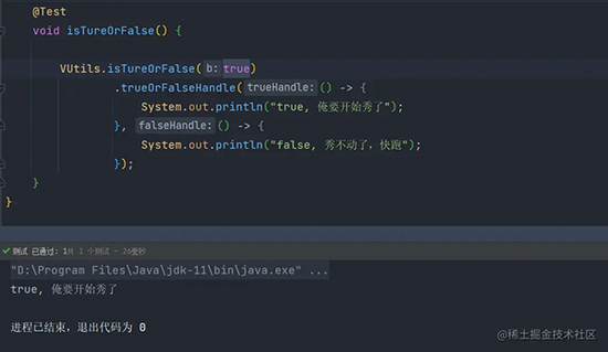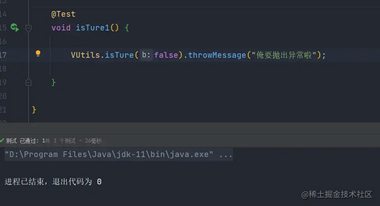 调用工具类参数参数后,调用函数式接口的throwMessage方法传入异常信息。当出入的参数为false时正常执行。