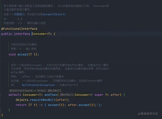 Consumer消费型函数和Supplier刚好相反。Consumer接收一个参数,没有返回值。
