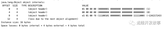import org.openjdk.jol.info.GraphLayout;public class ObjectTest2 {public static void main(String[] args) {Object obj = new Object();System.out.println(ClassLayout.parseInstance(obj).toPrintable());System.out.println();System.out.println();System.out.println(GraphLayout.parseInstance(obj).toPrintable());System.out.println();System.out.println();System.out.println(GraphLayout.parseInstance(obj).totalSize());}