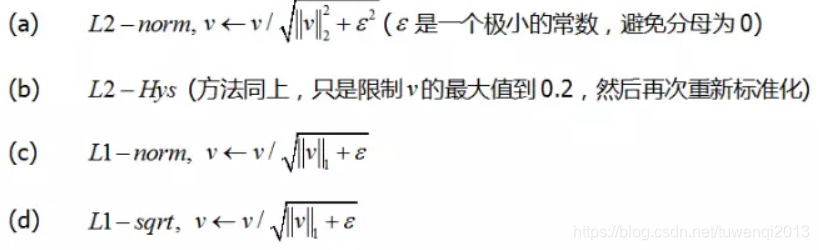 block是由多个 cell 组合而成的,典型的组合方式是 2x2 个 cell 组成成一个 block。由上图可知,每一个cell的大小是8*8,因此计算的block是9*2*2=36维的向量,对block做归一化处理,但一般采取L2-norm归一化处理方式, 。