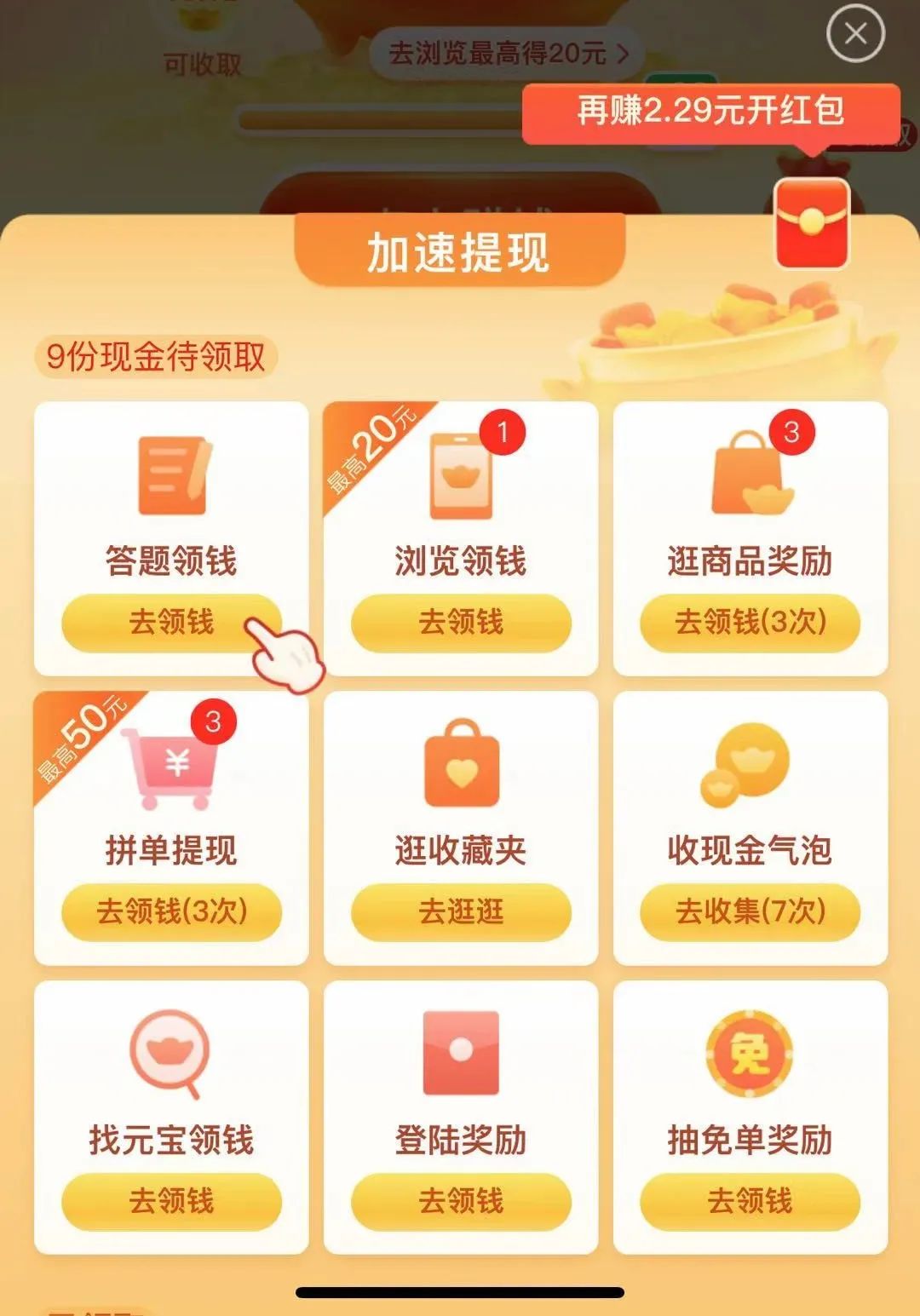 除了这个活动拼多多里面还设置了不同的各种小活动, 满足不同的用户群体的需要, 在玩小任务的过程中领取对应的奖励