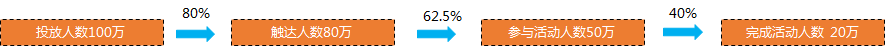 从下图的触达到参与的转化率只有 62.5%, 说明我们选的定向的用户可能对于我们的活动不是非常感兴趣, 可能是这批用户本身不是特别喜欢参与活动, 所以我们就可以重新选取其他可能更加可能响应的用户来做定向推送