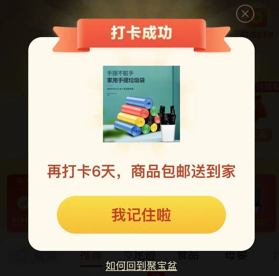 为了提高用户的留存, 拼多多提供了一个签到领取奖品的活动鼓励用户每天都打开app 来签到打卡, 签到满XX天就可以送你对应的商品礼物, 大大促进拼多多用户群体的薅羊毛的心理, 同时也提升了留存
