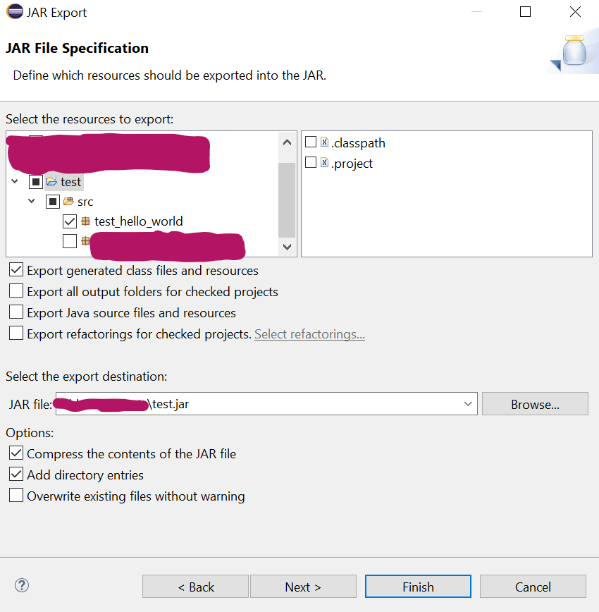 其中test.test点后面的test是主要的类,test.jar是文件名,test是放.class的目录
