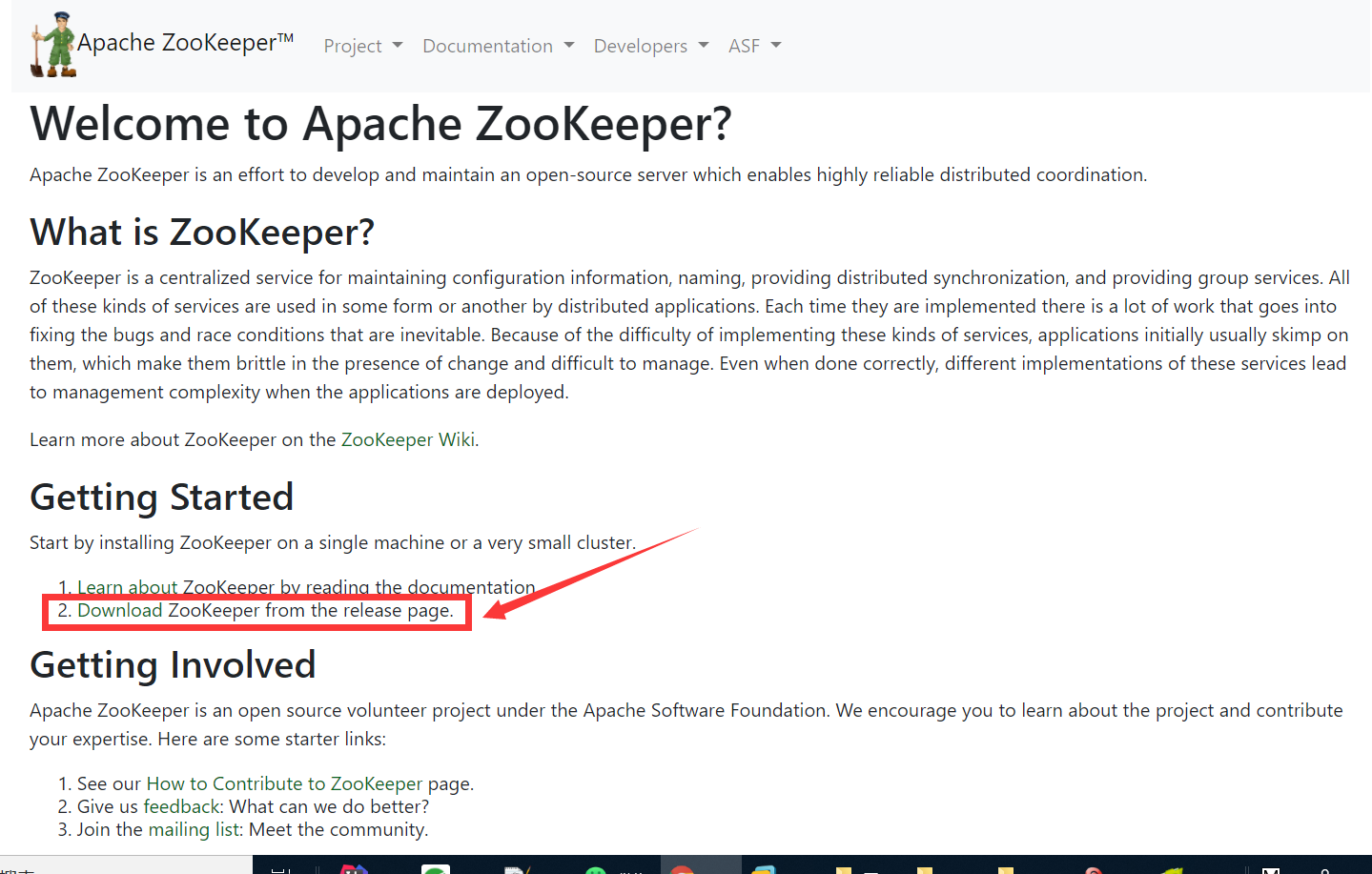 1:我们先打开zooKeeper的官方网站:https://zookeeper.apache.org/ ;点击 Download 进入下载页面