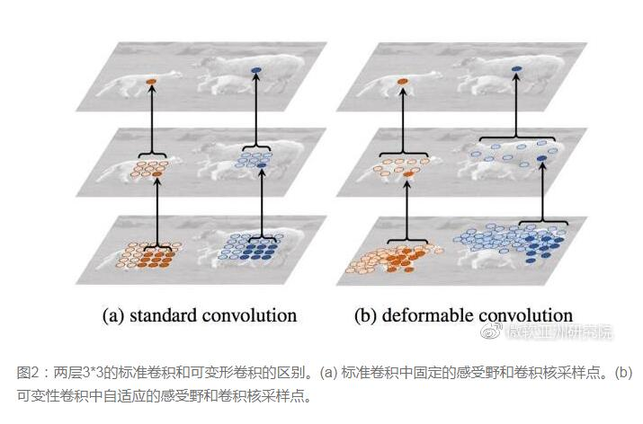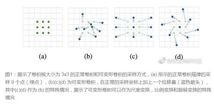 图来自微软亚洲研究院公众号要做到这个操作,可以直接在原来的过滤器前面再加一层过滤器,这层过滤器学习的是下一层卷积核的位置偏移量(offset),这样只是增加了一层过滤器,或者直接把原网络中的某一层过滤器当成学习offset的过滤器,这样实际增加的计算量是相当少的,但能实现可变形卷积核,识别特征的效果更好。详细MSRA的解读可以看这个链接:可变形卷积网络:计算机新“视”界。