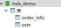 我们新建一个数据库mds_demo,里面有两张表:order_info,user