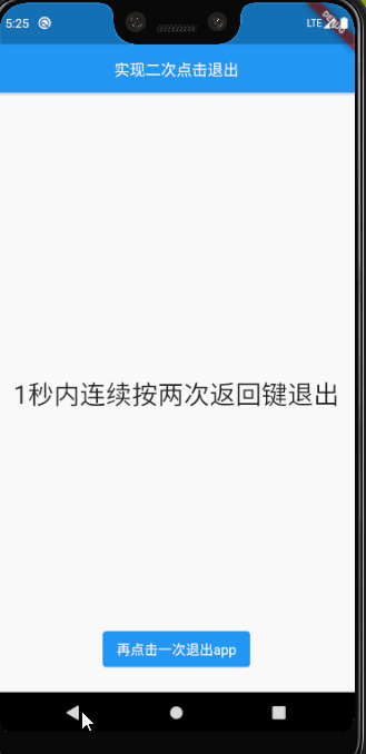 }class WillPopTest extends State {DateTime _lastTime;@overrideWidget build(BuildContext context) {return MaterialApp(home: Scaffold(appBar: AppBar(backgroundColor: Colors.blue,centerTitle: true,title: Text('实现二次点击退出',style: TextStyle(fontSize: 18, color: Colors.white),),),body: WillPopScope(onWillPop: ()async{if(_lastTime==null||DateTime.now().difference(_lastTime)>Duration(seconds: 1)){_lastTime=DateTime.now();Fluttertoast.showToast(msg: "再点击一次退出app",fontSize: 16,backgroundColor: Colors.blue,textColor: Colors.white);return false;}return true;},child: Container(alignment: Alignment.center,child: Text("1秒内连续按两次返回键退出",style: TextStyle(fontSize: 30),),),),),);}